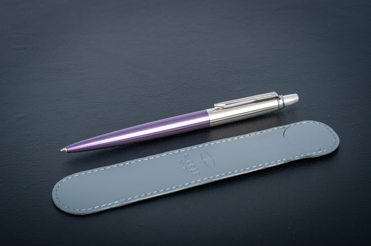 Набор Шариковая ручка Parker Jotter Victoria Violet CT и чехол от официального дилера Parker в Нефтеюганске. Вы можете дополнительно заказать гравировку, которая подчеркнет Вашу оригинальность и придаст памятность статусному подарку. Все ручки Паркер поставляются в фирменном футляре.