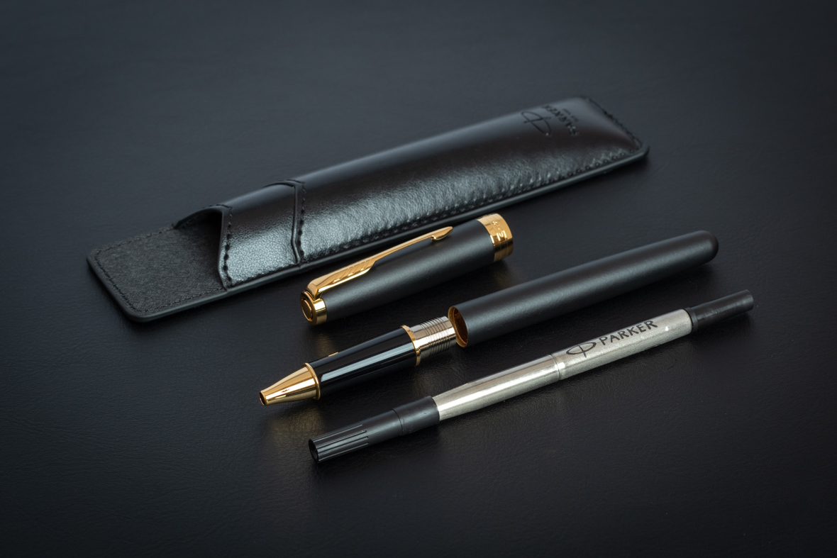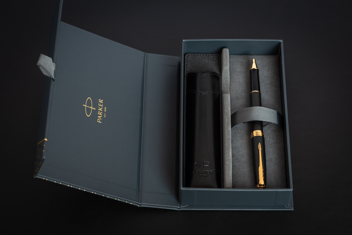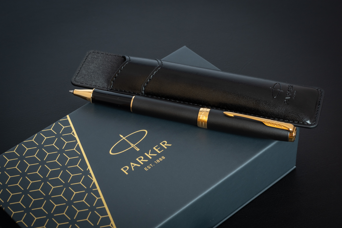 Набор Parker Sonnet Black GT (ручка роллер + чехол) от официального дилера Parker в Нефтеюганске. Вы можете дополнительно заказать гравировку, которая подчеркнет Вашу оригинальность и придаст памятность статусному подарку. Все ручки Паркер поставляются в фирменном футляре.