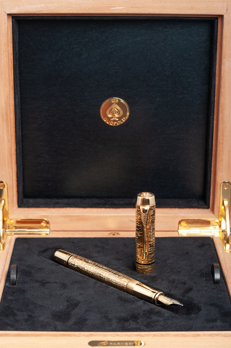 Перьевая ручка Parker Duofold Solid Gold F К от официального дилера Parker в Нефтеюганске. Вы можете дополнительно заказать гравировку, которая подчеркнет Вашу оригинальность и придаст памятность статусному подарку. Все ручки Паркер поставляются в фирменном футляре.